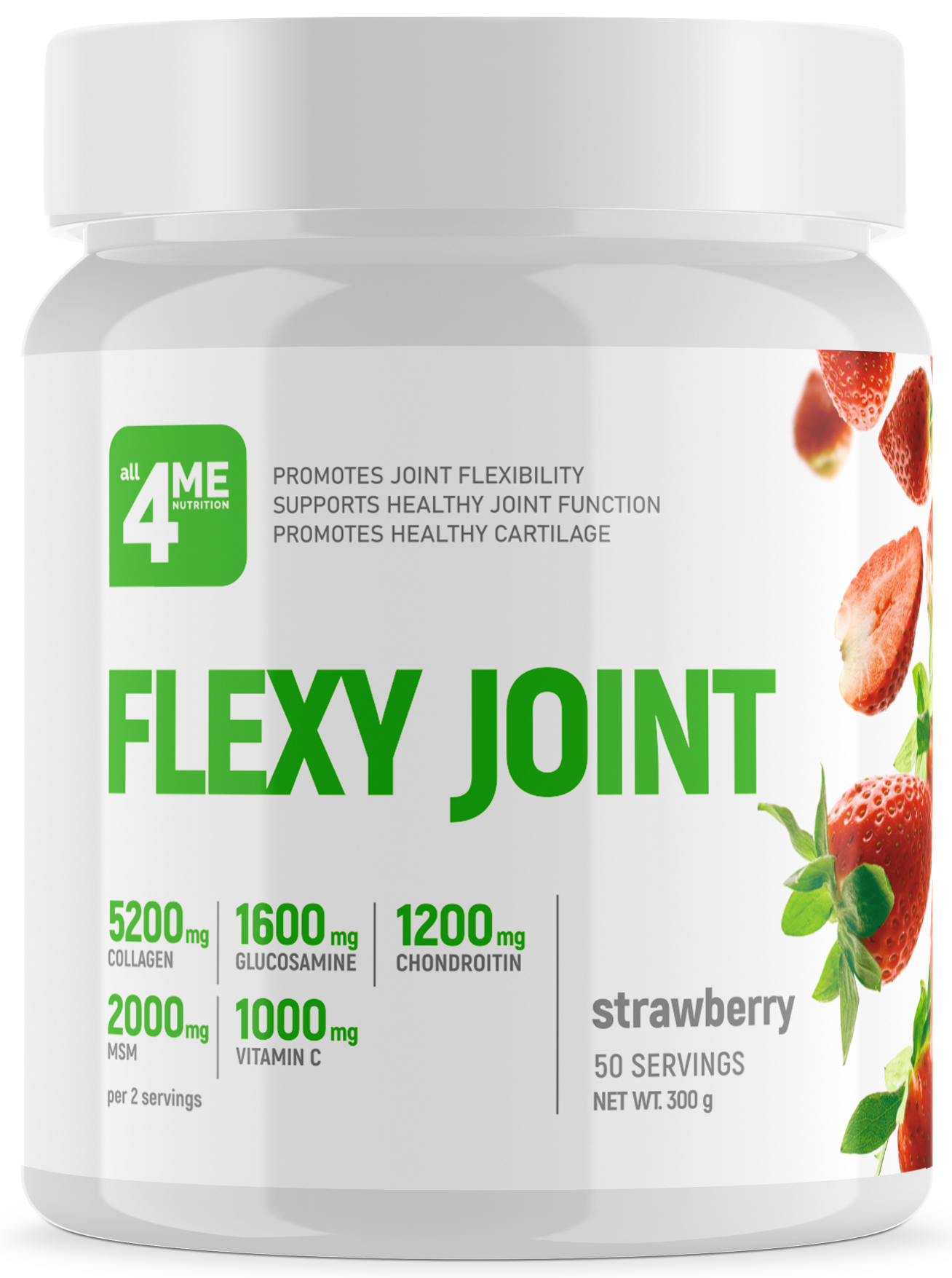 FLEXY JOINT от all4ME NUTRITION - это источник коллагена и хондропротекторов глюкозамина, хондроитина и МСМ (метилсульфонилметана) в порошке для приготовления напитка.