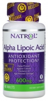 Альфа-липоевая кислота Natrol с медленным высвобождением, 600 мг: - это антиоксидант, витаминоподобное соединение, которое используется в организме расщепляя углеводы и генерирует энергию для органов тела. У Альфа-липоевой кислоты уникальным действием является то, что она растворяется и в воде и в жире, в отличие от более распространенных антиоксидантов, таких как витамины C и E. Так же Альфа-липоевая кислота это вещество, которое нейтрализует потенциально вредные химические вещества, называемые свободными радикалами и таким образом помогает предотвратить повреждение клеток в организме.
