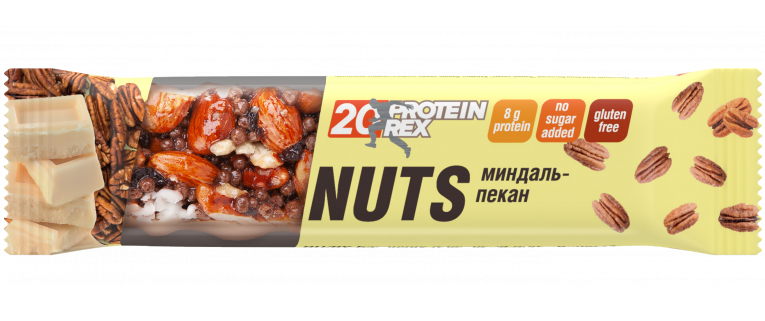 ProteinRex ProteinRex Батончик ореховый протеиновый Миндаль-Пекан 1 батончик - 40 грамм в деталях