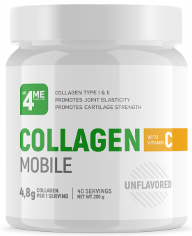 При занятиях спортом, при любых физических упражнениях ваши суставы и связки выдерживают повышенную нагрузку, могут получать микротравмы, болеть, терять прежнюю гибкость и подвижность. Прибавьте к этому то, что после 30 лет выработка собственного коллагена клетками-фибробластами снижается, запускается процесс старения. Чтобы поддержать здоровье суставно-связочного аппарата при физических нагрузках, с возрастом, после травм, сохранить подвижность и активный здоровый образ жизни в любом возрасте - принимайте COLLAGEN MOBILE с витамином C от ALL4ME NUTRITION.