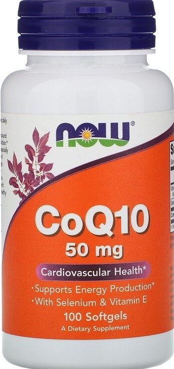 NOW CoQ10 50 мг + Vit E ? биодобавка к полноценному питанию атлета на основе коэнзима Q10 (убихинона) и витамина Е. Во время активных физических нагрузок организм спортсмена быстро расходует запасы Q10, поэтому употребление препарата необходимо для восстановления концентрации убихинона в клетках организма.