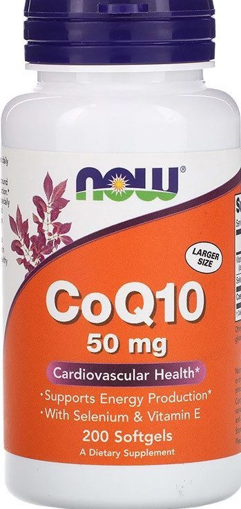 NOW CoQ10 50 мг + Vit E ? биодобавка к полноценному питанию атлета на основе коэнзима Q10 (убихинона) и витамина Е. Во время активных физических нагрузок организм спортсмена быстро расходует запасы Q10, поэтому употребление препарата необходимо для восстановления концентрации убихинона в клетках организма.
