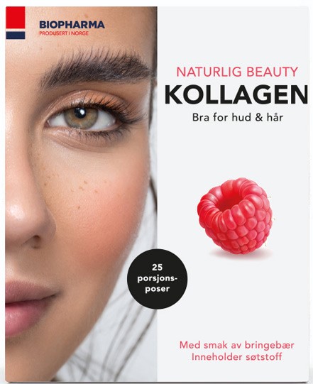 Biopharma Naturlig Kollagen - это диетическая добавка, содержащая гидролизованный морской коллаген в порошке из экологически чистой норвежской рыбы с витамином С и биотином. Биотин хорош для кожи и волос, а витамин С способствует нормальному усвоению коллагена.
