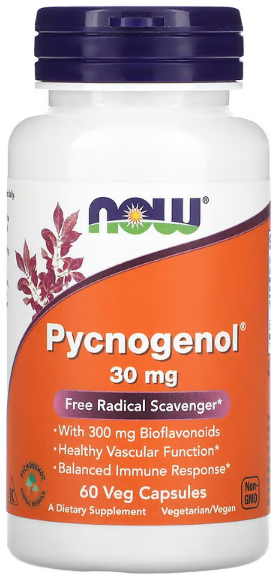 Пикногенол, или Pycnogenol, представляет собой экстракт коры французской морской сосны, обладающий мощными антиоксидантными свойствами. NOW Пикногенол поддерживает здоровье сердечно-сосудистой системы, улучшает состояние кожи, укрепляет иммунную систему и защищает клетки от повреждений.