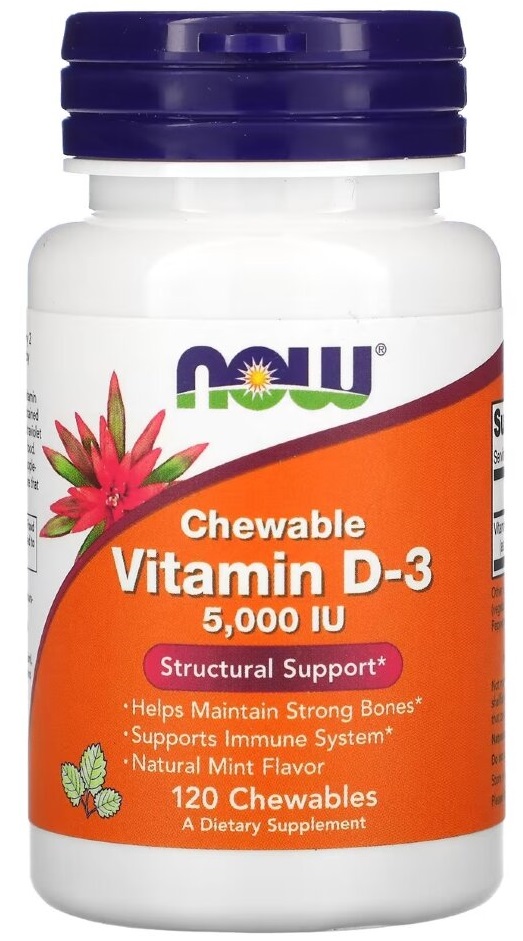 Жевательный витамин D3 от NOW® предлагает этот ключевой для человеческого организма витамин в виде вкусных жевательных таблеток. Обычно витамин D вырабатывается кожей под воздействием ультрафиолетового излучения солнца или извлекается из пищи. Однако продукты не содержат достаточное количество витамина D. Поскольку многие люди стараются избежать воздействия солнечных лучей, необходимость в дополнительном приеме витамина D становится все более важной.