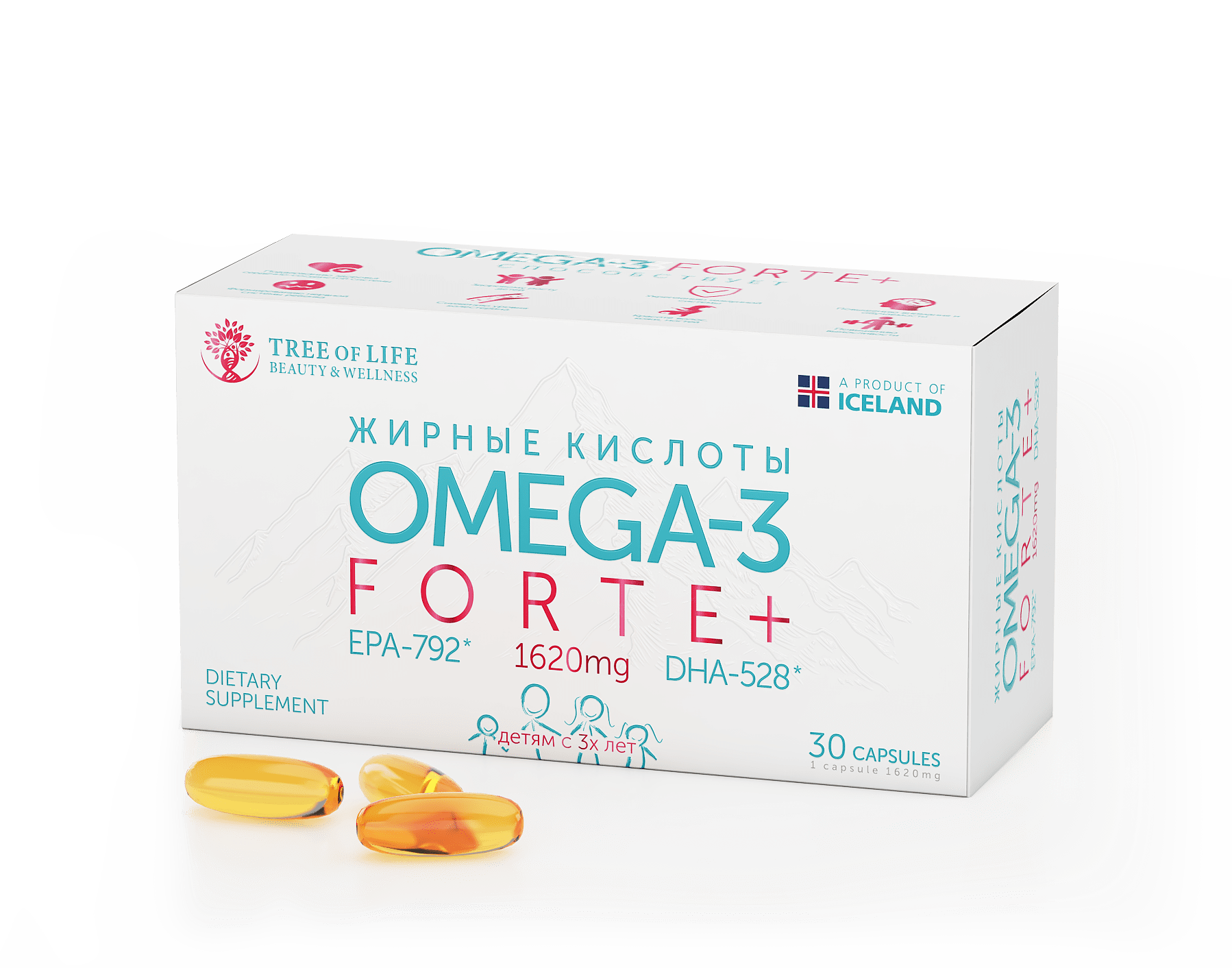 Omega-3 Forte это комплекс высококачественных полиненасыщенных жирных кислот, источником которых является рыбий жир исландского производителя LYSI. Омега-3 способствует снижению уровня стресса, ускорению метаболизма и процесса похудения, снижению риска формирования инфарктов и инсультов и способствует улучшению подвижности суставов. Главными и самыми ценными компонентами Омега-3 являются жирные кислоты EPA и DHA (ЭПК и ДГК) и Omega-3 Forte отличает их высокое содержание на порцию. В производстве Omega-3 Forte используется рыбий жир исключительного качества с низким процентом кислотности, поэтому его можно принимать детям уже с 3-х лет!