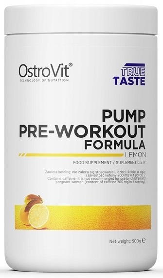 Pump Pre-Workout Formula от OstroVit предназначен для повышения выносливости организма и, как следствие, улучшения эффективности тренировок. Формулу его составляют бета-аланин, аргинин, цитруллин, таурин, лейцин, карнитин, тирозин. Такой состав делает его идеальным помощником при наращивании именно сухой мышечной массы. Результат от его применения производитель обещает уже после первой тренировки.