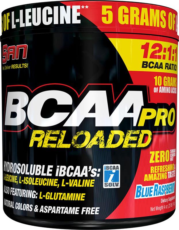 BCAA Pro Reloaded ? это быстрорастворимые аминокислоты BCAA от американского производителя SAN с соотношением 12:1:1. Помимо самих BCAA (лейцина, изолейцина и валина) в состав препарата также входит глютамин, что в целом повышает эффективность добавки. Данный аминокислотный комплекс можно принимать как во время набора мышечной массы, так и во время сушки.