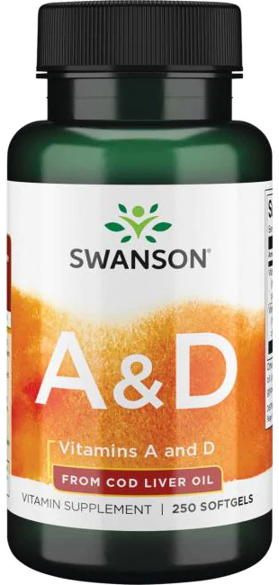Swanson Vitamin A & D работают вместе, чтобы играть ключевую роль в поддержании хорошего зрения, здоровой кожи и сильной иммунной системы. Каждая желатиновая капсула содержит 5000 МЕ витамина А и 400 МЕ витамина D и получена из жира печени трески без неприятного "рыбного" вкуса.