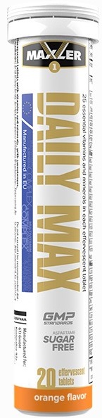 Витамины и минералы составляют основу практически для всех биологически активных добавок и в широком ассортименте представлены в форме таблеток и капсул. Maxler предлагает уникальную альтернативу приему витаминно-минеральных комплексов ? полюбившийся миллионам Daily Max в форме шипучих таблеток. В одной порции нам удалось уместить суточную норму 25 важнейших витаминов и минералов. Продукт не содержит сахара, аспартама и ГМО и изготовлен в соответствии с последними стандартами качества Европейского Союза. Кроме того, Daily Max effervescent tablets наделен потрясающим натуральным вкусом, который никого не оставит равнодушным. Безупречный во всех отношениях, Daily Max effervescent tablets станет Вашим любимым витаминно-минеральным комплексом.