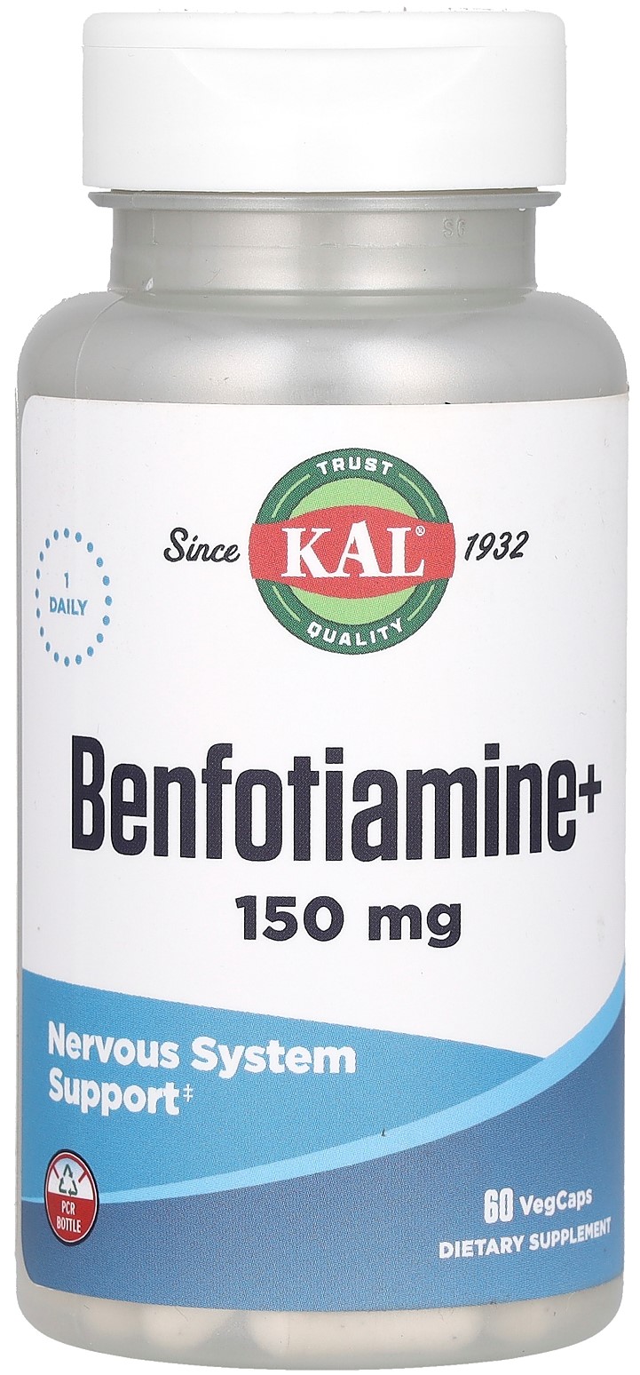 KAL Benfotiamine+ 150 мг (Бенфотиамин+) – это продукт, который применяется для общего оздоровления различных систем организма и для нормализации метаболизма. Позволяет усваиваться белкам, не позволяет накапливать жировую прослойку. Применяется для здоровья нервной системы, кишечника, кожи, волос, ногтей, печени, для нормализации состава крови, для предотвращения предраковых изменений в клетках, для здорового синтеза гормонов и функциональности щитовидной железы.