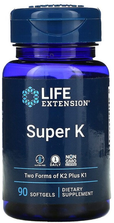 Super K содержит ТРИ вида витамина K: витамин K1 и две формы K2, менахинон-4 (MK-4) и менахинон-7 (MK-7). Ежедневный прием Super K - это хороший способ получать достаточно этого питательного вещества, необходимого для здоровья костей и сосудов.