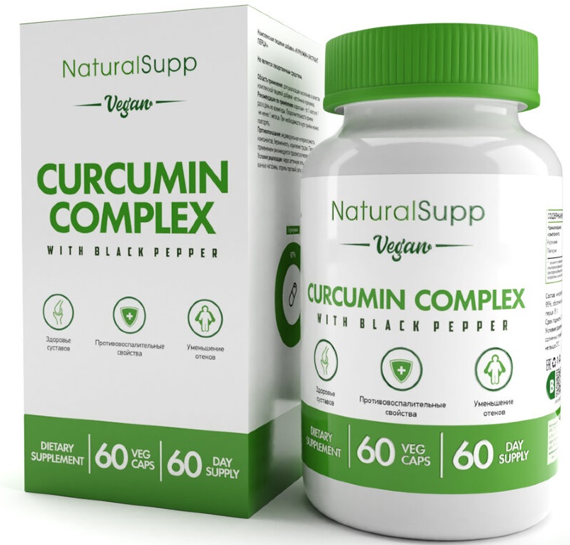 Содержащиеся в составе Curcumin от NaturalSupp экстракты куркумы и черного перца обладают сильными противовоспалительными свойствами. Они помогают организму бороться с различными воспалительными процессами, а также стимулируют иммунную функцию, повышают антиоксидантную защиту и улучшают пищеварение.