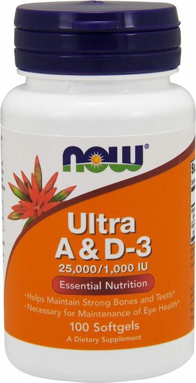 A + D-3 Ultra, витамины А 25000 МЕ + Д-3 1000 МЕ (100 желатиновых капсул) - биологически активная добавка, производимая компанией NowFoods.