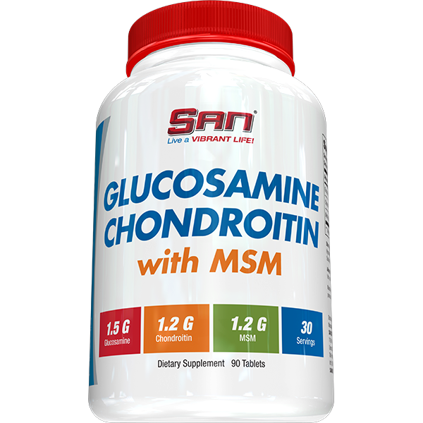 Комплекс SAN Glucosamine Chondroitin MSM способствует укреплению суставов и связок за счет специальных питательных нутриентов, которые, доказано, активируют противовоспалительный защитный механизм в нашем теле. Каждые три таблетки SAN Glucosamine Chondroitin MSM содержат клинически выверенную порцию глюкозамина (1500 мг), хондроитина (1200 мг) и метилсульфонилметана (1200 мг).