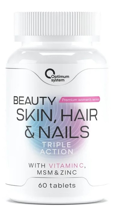 Skin, Hair & Nails Beauty от Optimum System ? это комплекс с идеально сбалансированной формулой, которая направлена на восстановление и поддержание здоровья кожи, ногтей и волос.