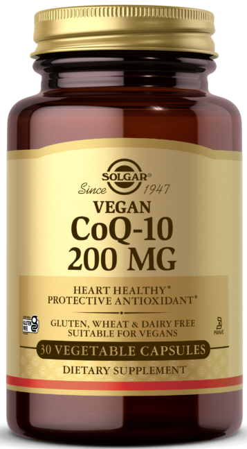 Solgar CoQ10 200 mg VEGAN 30 vcaps - добавка от бренда Solgar, содержащая коэнзим Q10. Этот продукт способствует улучшению общего состояния организма. Коэнзим Q10 является мощным антиоксидантом, который помогает укрепить иммунитет и защитить клетки организма от окислительного стресса.