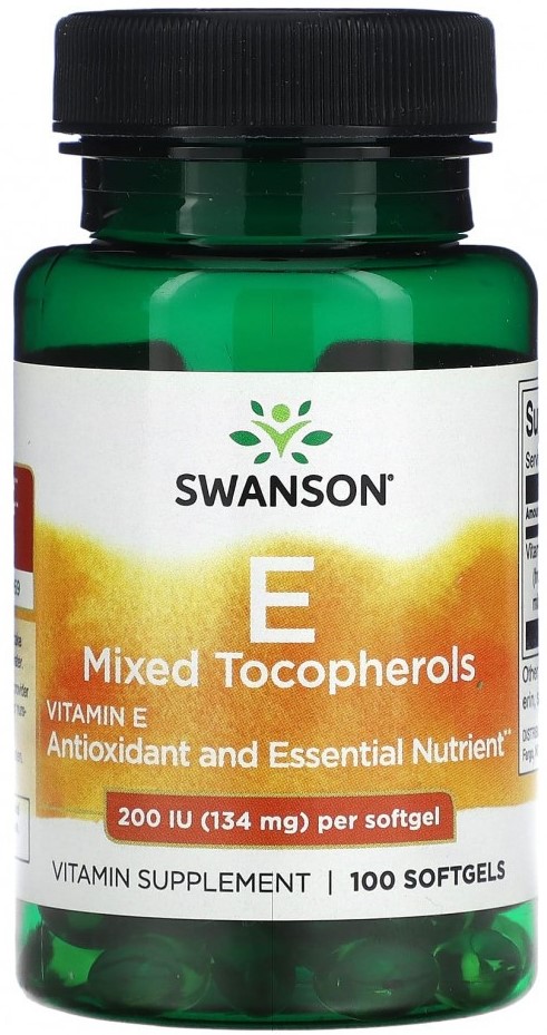 Витамин Е, Vitamin E Natural, Swanson - один из важнейших витаминов для человеческого организма и является жирорастворимым витамином. Благодаря своей антиоксидантной и радиопротекторной активности витамин Е принимает участие в биосинтезе белков, пролиферации клеток и других процессах метаболизма, которые происходят в клетке. Благотворно влияет на работу сердца и улучшает циркуляцию крови, повышает усвоение кислорода тканями, укрепляет сосуды (влияет на тонус и проницаемость стенок, стимулирует возникновение новых капилляров).